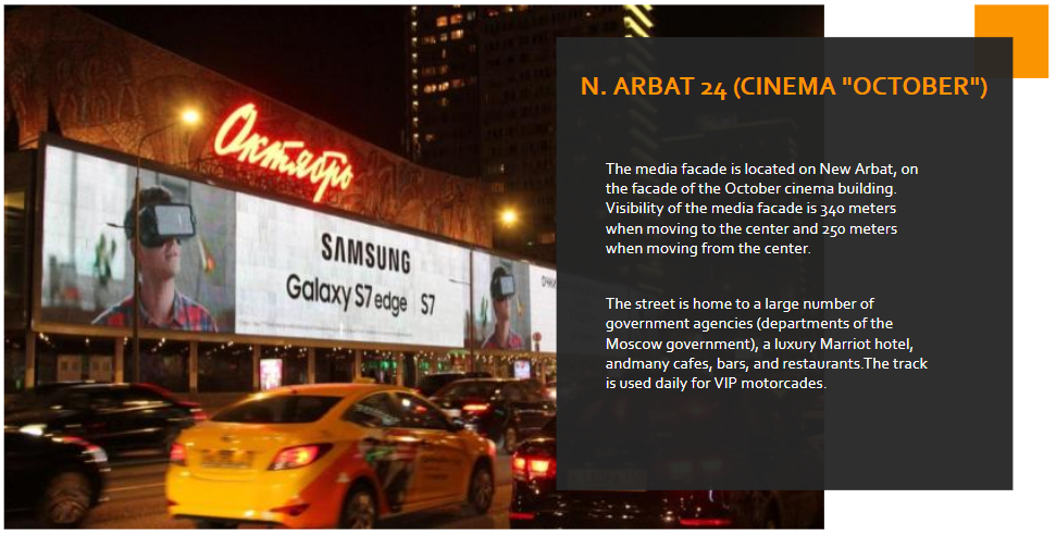 In addition, other technologies are available to OOH customers. These include: launching videos by triggers, live broadcasts, setting up targeting and retargeting in real time by interests and socio-demographic characteristics, 3D advertising, dynamic creative management and synchronization of advertising impressions with multiple facades. Plus, operators are ready to provide data on the effectiveness of DOOH due to brand and sales lift, independent pixel meters (Weborama, Sizmek, Adriver) and monitoring of AdMetrix and Mediascope advertising output.